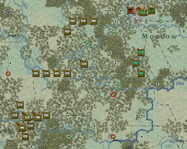 All Soviet motorized units are set to reserve status with a notional 25 MP on turn 1 if the German side is being played by a human.