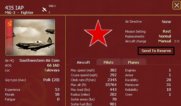Air units can be assigned to the reserve either by clicking on the individual unit counter or by using the Commander’s Report (35.4).