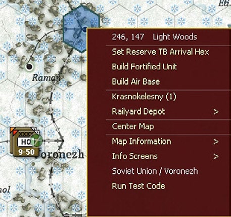 The target hex is selected by right clicking on the map and choosing the option ‘Set Reserve TB Arrival Hex’.