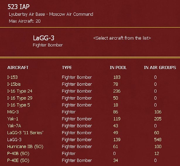 As the war progresses, AOGs, Air Corps and Air Army commands are added or removed as a result of scripted transfers and reinforcements.