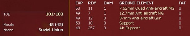Airbases at 100% of their TOE will have 250 Air Support elements to service the aircraft (in some scenarios this number may be exceeded at the start of the game).