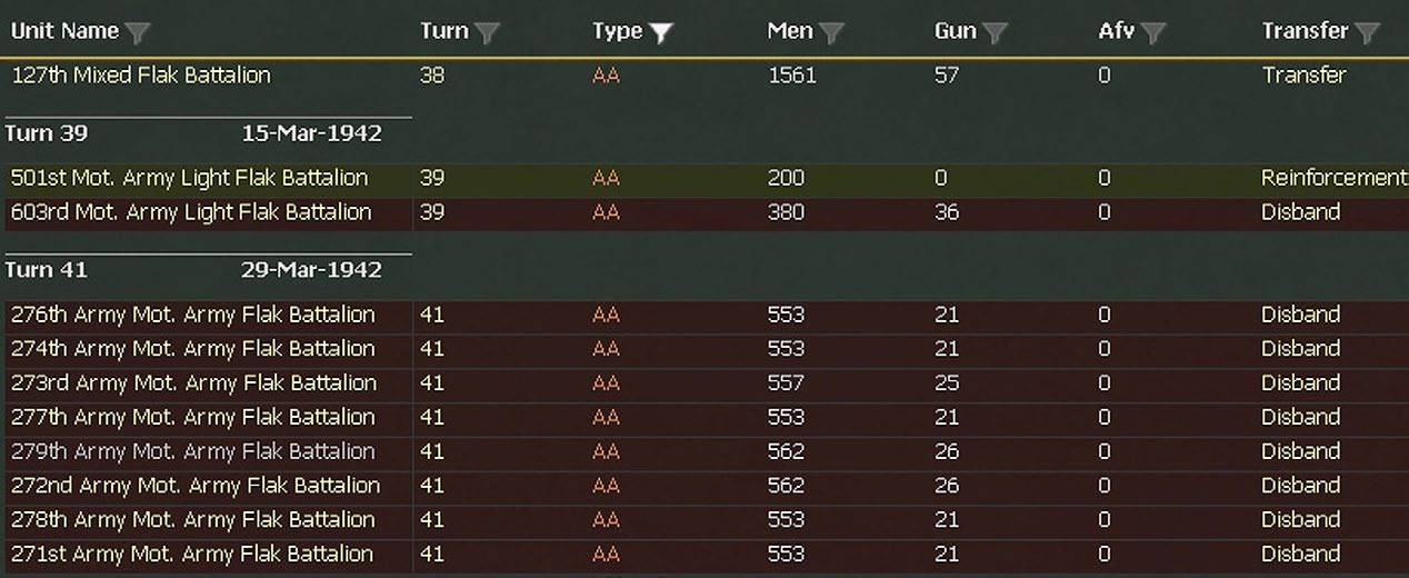Over time you will notice a number of these will disband. Historically the Germans re-organised their mobile units by increasing the amount of organic AA in the divisions at the expense of these individual battalions.