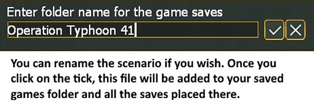 - The scenario will load and suggest a title for the folder where it will save the game (all the saves for different games are in their own folders). Accept the suggested title and the game will open.