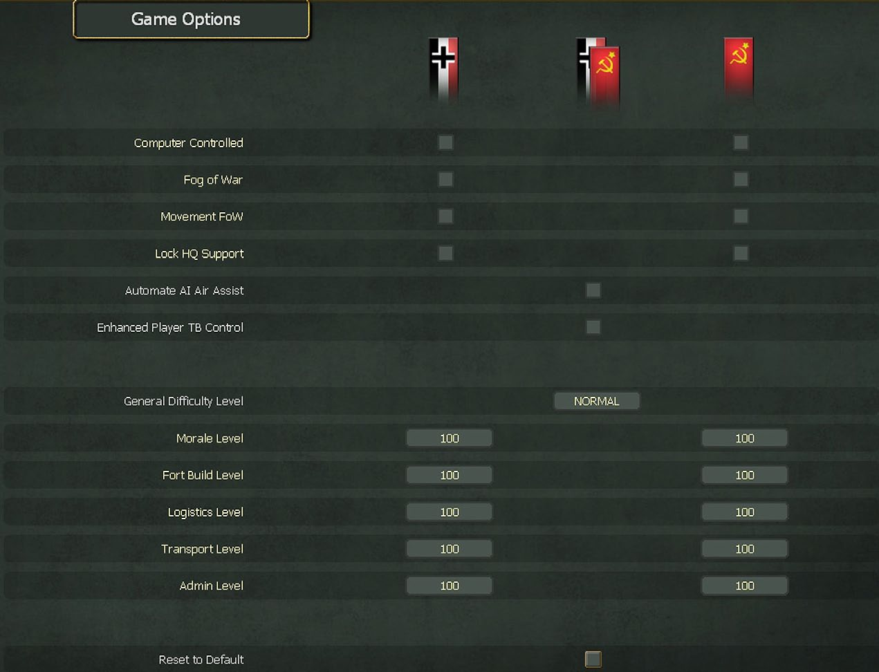 Note that there are three columns. The first changes the relevant value for the Axis side, the third for the Soviet side. Options in the middle column apply equally to both sides.