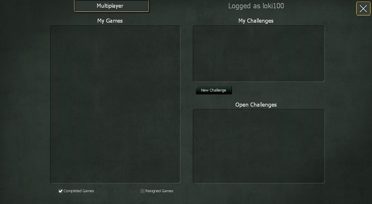 Once you are logged in, the screen is divided into a section that will show any games you are currently playing, one that shows any challenges you have created and where there are games you can offer yourself as an opponent.