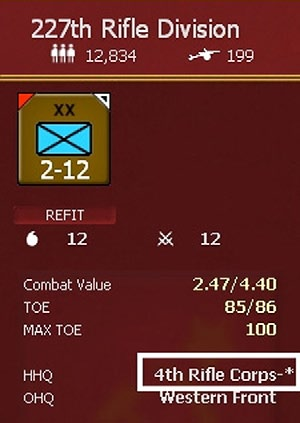 In the course of the game a number of HQs will change their designation. Some of these will have little impact on gameplay such as the early German motorized corps being re-designated as Panzer Corps.