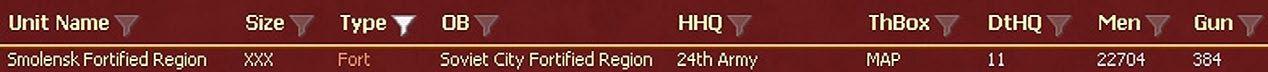Units in a city fort will be shown in the Commanders Report (Appendix 35.2) with the notation ‘fort’ as opposed to the usual hex location data. By clicking on unit name, the map will center on fort unit with its detailed unit tab open (you can remove units from the fort using this if you wish).