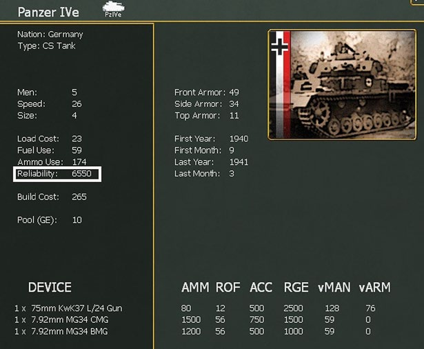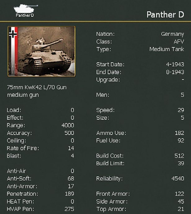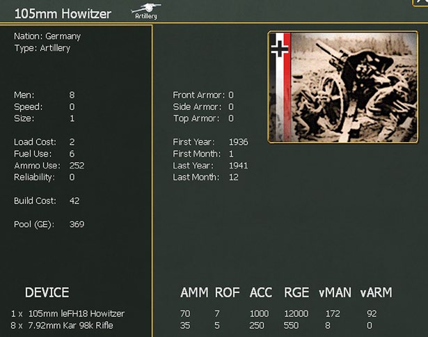 All ground units are composed of multiple types and numbers of ground elements. These ground elements represent individual squads, guns, AFVs, and other combat vehicles such as halftracks and armoured cars. Every ground element consists of manpower and equipment (such as a tank and its crew).