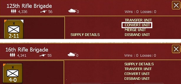 A specific combat unit can only be transferred once per turn, they will suffer a –1 for admin rolls on the turn the change was made and will be marked with an asterisk in the combat unit detail window to denote that it cannot be transferred again that turn.