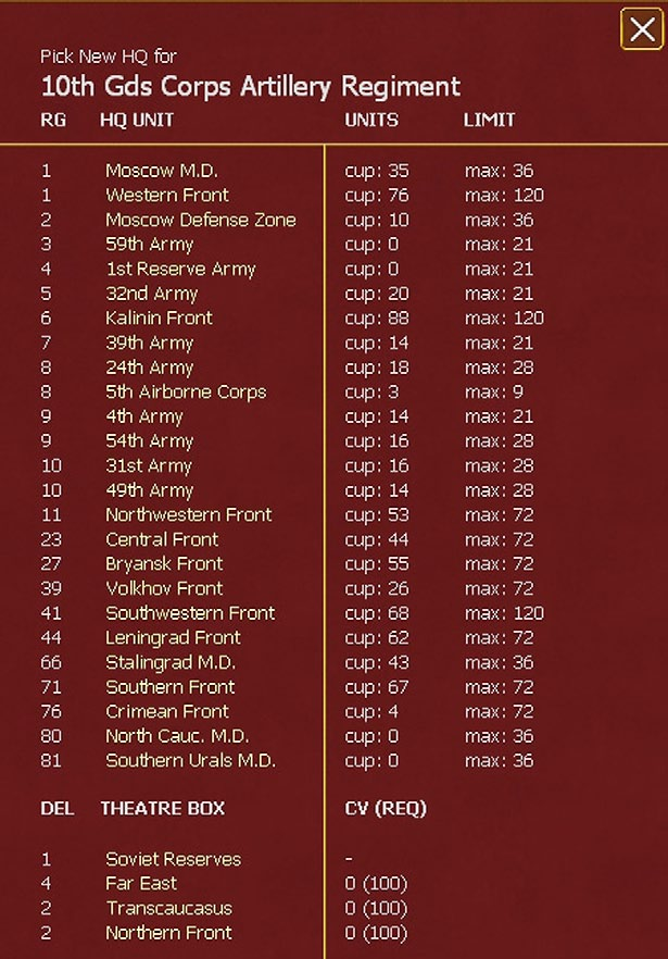- The unit itself or its HQ has just been attached to the relevant Axis Army or Soviet Front this turn.