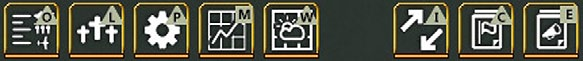 - The top row is a standard windows style toolbar, on the left side will be information about the current build, the scenario being played and the last save generated, on the right are the standard windows tabs for minimising a screen, reducing screen size or to exit the program.;