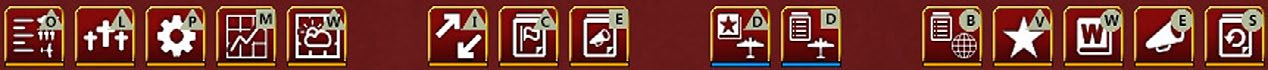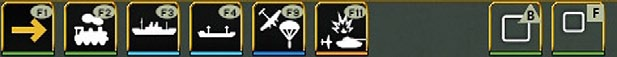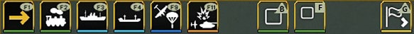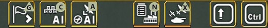 - The fourth row contains tabs that can be used to carry out game actions or access information, this will vary depending on whether it is the air planning phase or the ground movement phase (the example below is from the ground phase):