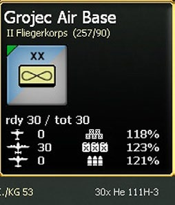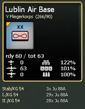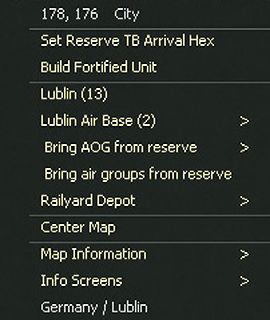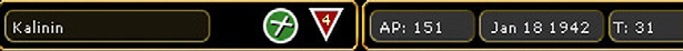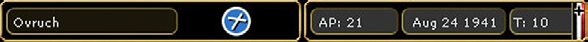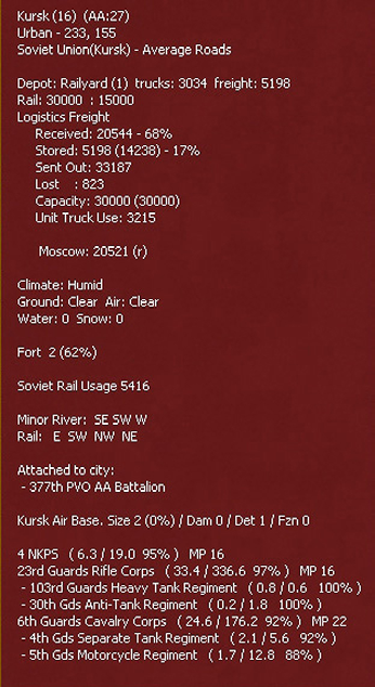 - On the right hand side will be a box that will contain information on how many administrative points (Chapter 9) are available, game turn by date and turn number. This box may also include a city/location name, an airfield indicator and information about a depot if these are present in the selected hex;
