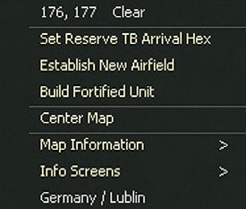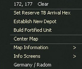 In addition to these options, many functions (and map views) can be accessed by right clicking on any hex on the map.
