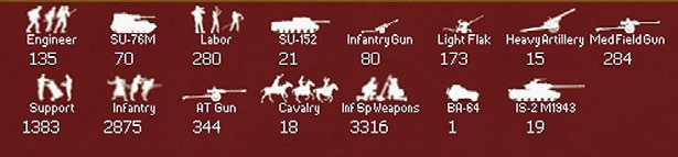 - Display Loss Screen: This screen provides the phasing player a summary of each side’s current casualties (disabled and destroyed) and permanent losses in terms of men, guns, AFV’s, vehicles, and aircraft (36.2).