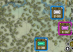 In addition, other units in other hexes on the map and deselected units in the same hex will change their border colour according to their relationship to the selected unit(s):